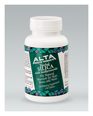 The source of Alta's Health Products Silica is from the Horsetail Herb. It is known for the process by which bone cartilage, connective tissue and skin are formed, and is a component of collagen. Once a silica supplement is started, in as little as 15 days one will see hair and nails start to grow stronger, healthier and usually faster. It also helps strengthen joints, bones and muscles because the body needs Silica.